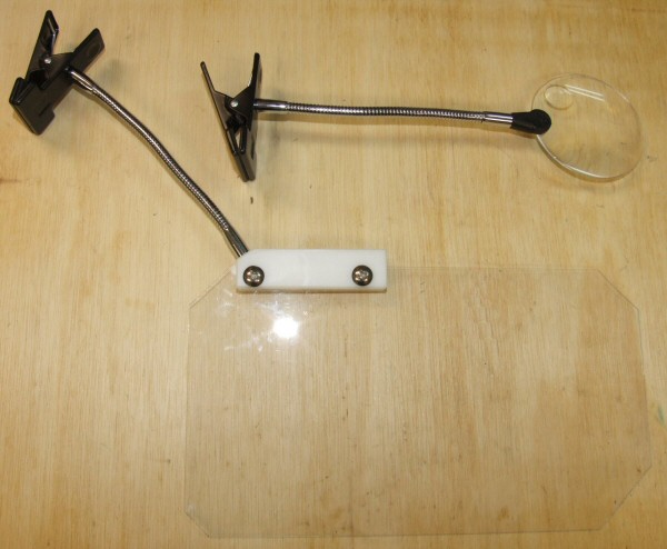 市販のクリップ拡大鏡のクリップとフレキパーツを使い、