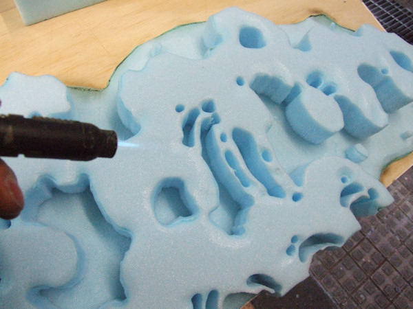スタイロフォームを自作のCNC氷彫刻機で削っていきます。