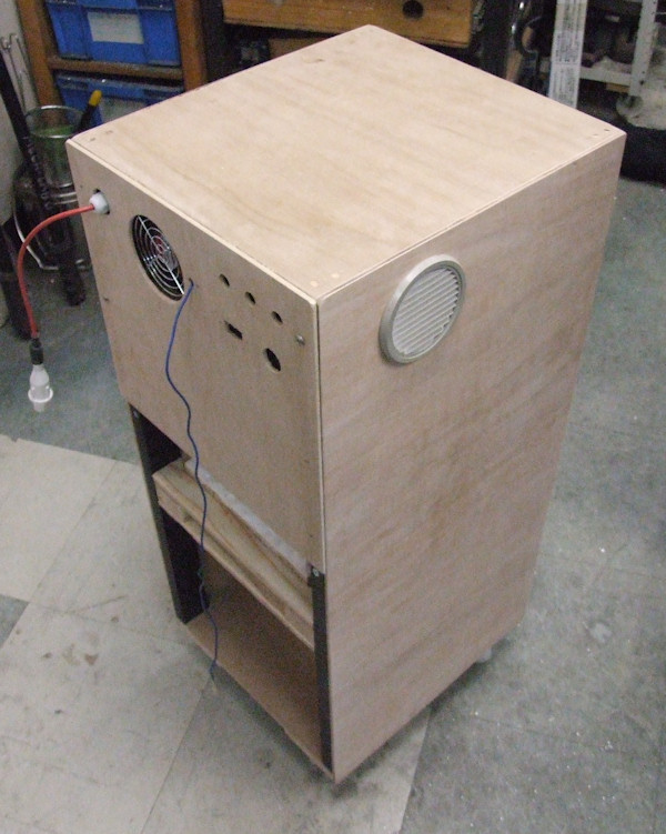 自作のレーザー加工モジュールのトランスや水冷用の容器や道具がバラバラだったので、