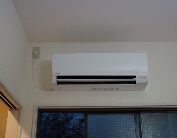 電気代もかかるだろうから、以前別の場所で使っていたエアコンが余っていたので、