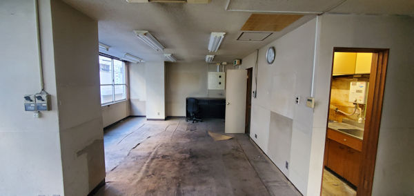 壁は震災の時にできたヒビや、ネジ釘の穴がいっぱい。